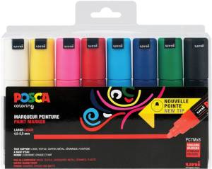 Uni POSCA paintmarker PC-7M, 4,5 - 5,5 mm, etui van 8 markers in geassorteerde basiskleuren