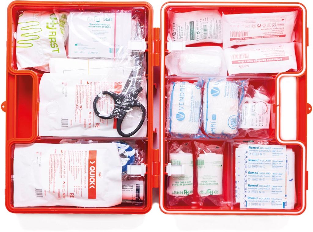 - Verbandkoffer BHV volgens richtlijnen van Het Oranje Kruis, norm 2021 Goedkeuringsnummer: VA 73-54